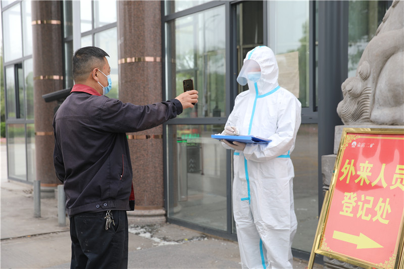 在該礦東門崗,本土“大白”仍然堅守在礦井戰疫第一線,嚴格地執行著查驗、登記等各項疫情防控措施。當班的“大白”是該礦物業公司治保隊員李勇,這個“五一”他依然選擇堅守崗位,為礦井守好外防輸入的第一道關口。