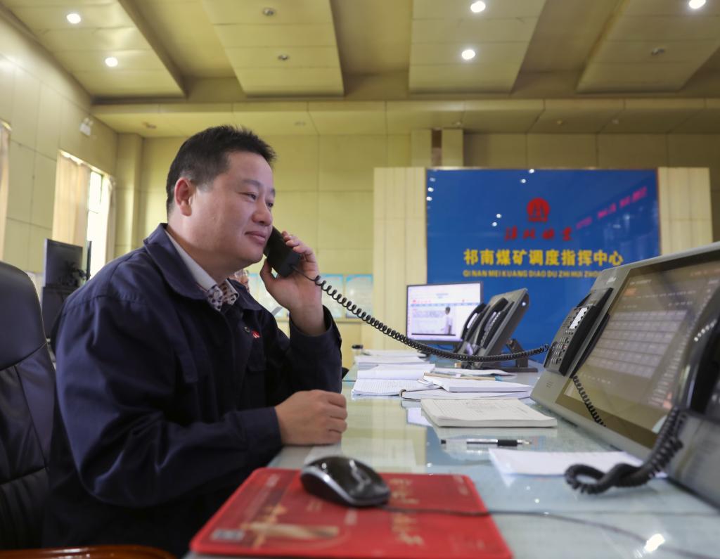 調度員余勇敢正在接聽井下生產電話。“要嚴格落實礦主要領導的要求,淡化節日氛圍,抓好安全生產,我們是礦安全生產的中樞,更是不能有絲毫大意?!?/p>