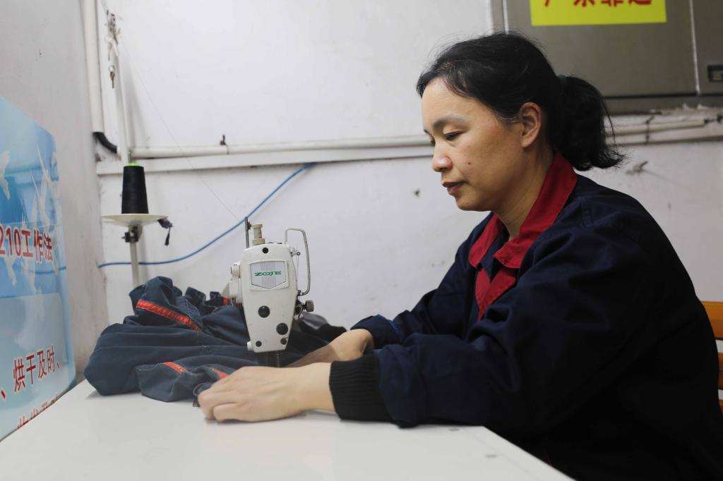 洗衣工楊襯心正在為職工縫補工作服?!肮澣掌陂g一線師傅們不放假,我們就要服務到位,及時把破損的衣服縫補好,就和他們及時消除安全隱患一樣,一刻也不能耽擱?!?/p>